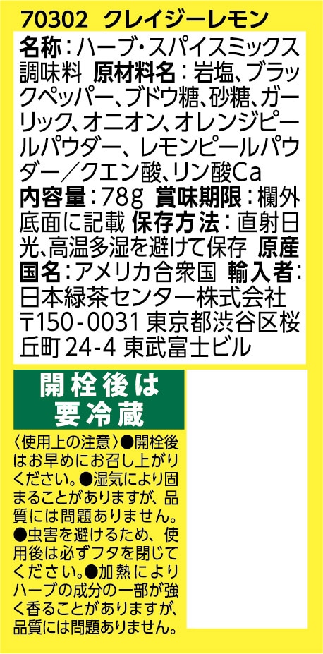 欧米のレストランにはもちろん家庭料理にも欠かせないジェーン・クレイジーシリーズの、岩塩ベースのレモン風味ハーブ調味料。
