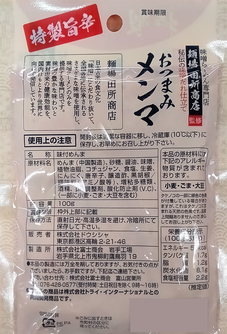 - 麺場 田所商店 特製旨辛みそおつまみメンマ 100g
