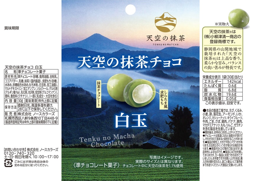 [48個]ノースカラーズ 天空の抹茶チョコ 白玉 30g | 天空の抹茶を使用した食感楽しむ和チョコ