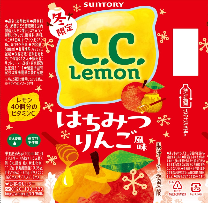 爽やかなレモンにりんごの香りとはちみつの贅沢な甘さをプラスした季節限定のC.C.レモンです。