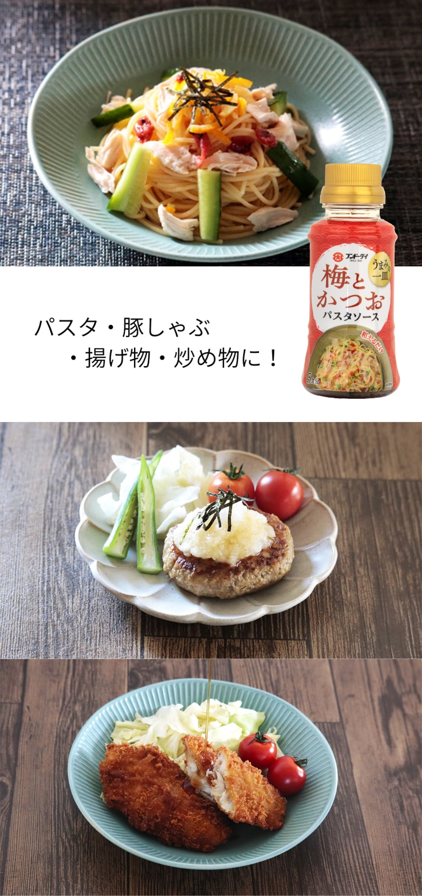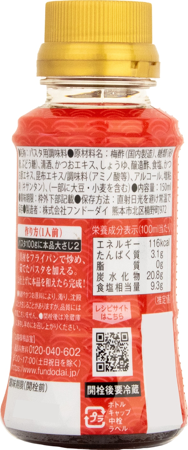梅酢をベースに、かつお節などのだしを効かせたノンオイルタイプのパスタソースです。