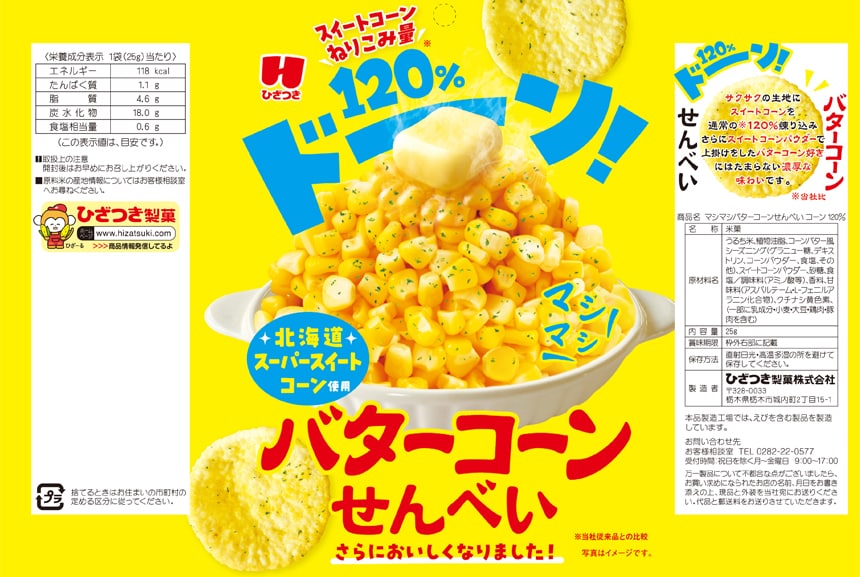 サクサクの生地にスイートコーンを練り込み、さらにスイートコーンパウダーで上掛けをしたバターコーン好きにはたまらない濃厚な味わいです。