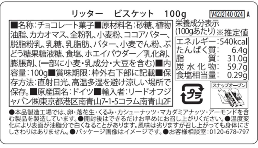 [9個]リードオフジャパン リッター ビスケット 100g | まるごと1枚のビスケットを包み込んだミルクチョコレート。