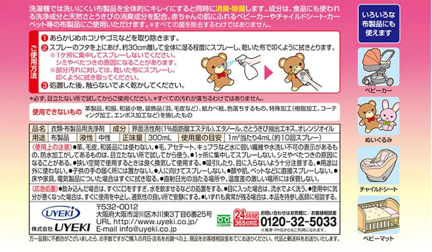 [12個]UYEKI 赤ちゃんの布製品クリーナー 300ml | ベビーカーやチャイルドシート等の布製品にスプレーして拭きとるだけできれいにします