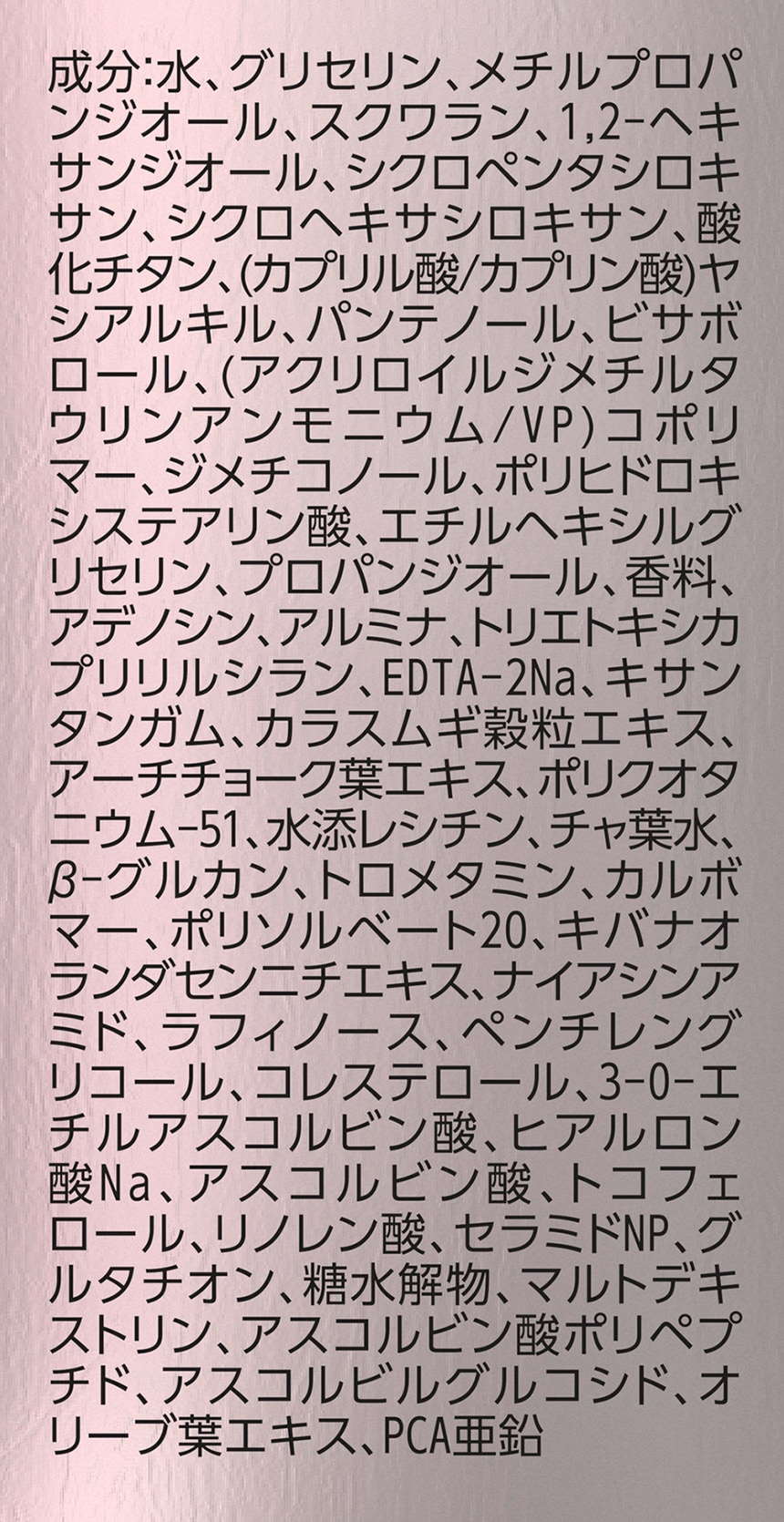 ・瞬間ツヤ効果うるおいを与えるクリーミー処方が、肌をなめらかにし、なじませた直後からツヤのある肌へ。 *グルタチオン、ビサボロール、3-O-エチルアスコルビン酸、ヒアルロン酸Na、酸化チタン:整肌成分(光沢&保湿)