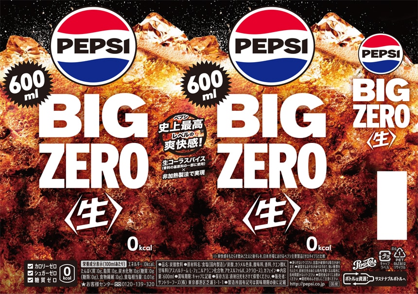 [48本]サントリービバレッジ&フード ペプシ<生> BIG ZERO 600mlペット | 超爽快な飲みごたえで生きかえった気分になれる、今の時代に向けた豪快なZEROコーラ