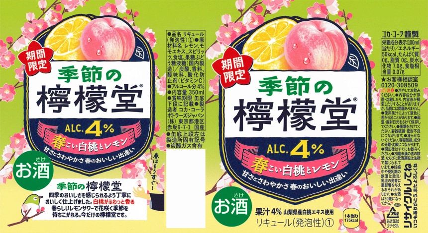 [72本]コカ・コーラボトラーズジャパン 季節の檸檬堂 春こい白桃とレモン 350ml | 日本の四季のおいしさを楽しむ季節の檸檬堂シリーズの春限定製品