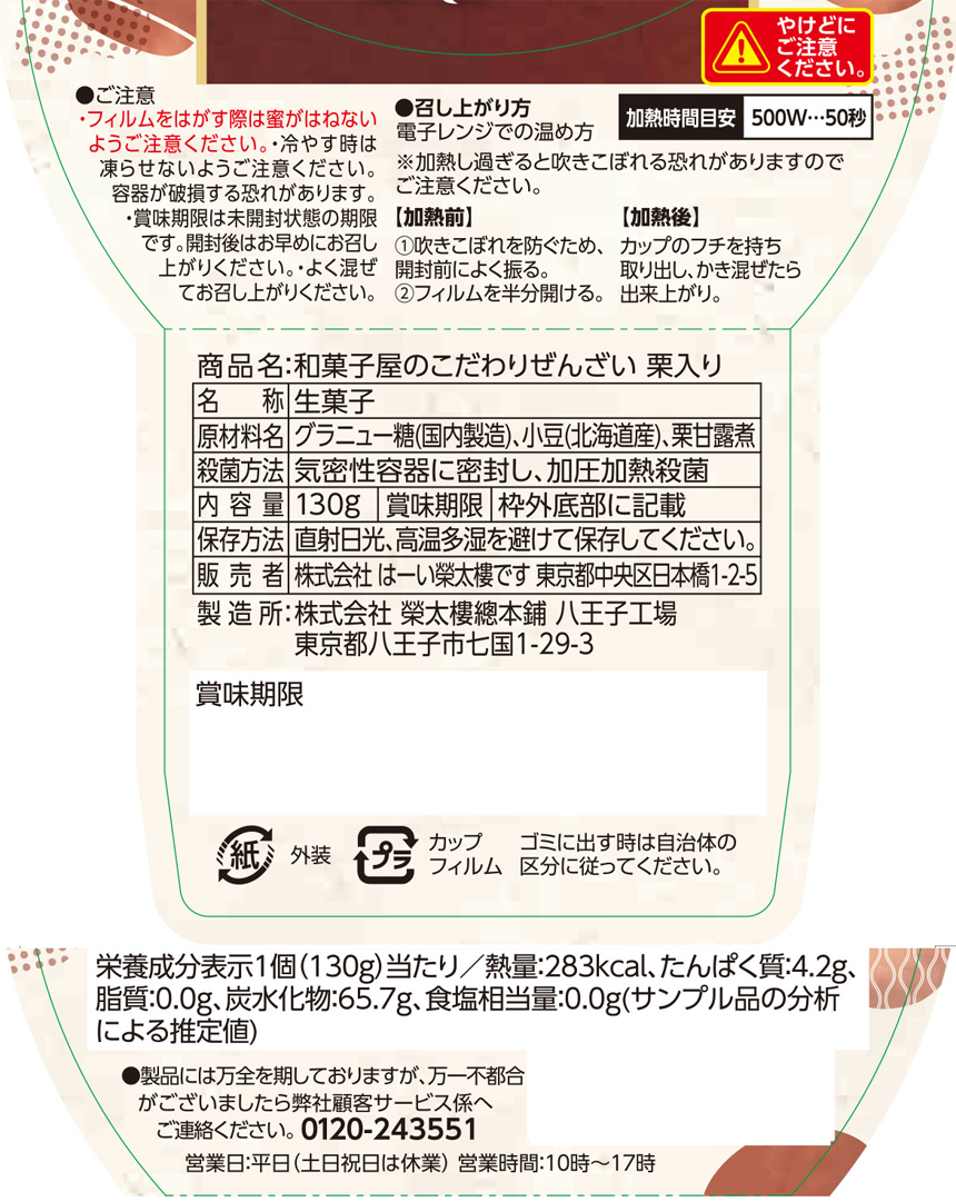 - 和菓子屋の栗入りこだわりぜんざい 130g / 和菓子屋のこだわりぜんざい 130g
