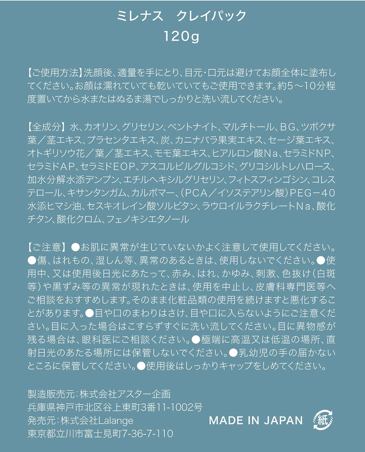 [4個]Lalange ミレナス 泥パック 120g | 【3分で完了!】クレイを顔全体に伸ばし3分後に洗い流すだけ