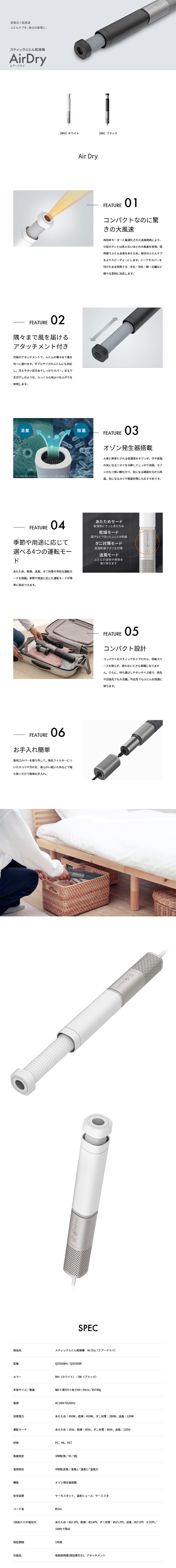 【ホワイト】クワッズ/スティックふとん乾燥機「エアードライ」(4モード:あたため、乾燥、ダニ対策、送風)|季節や用途に応じて選べる4つの運転モード!コンパクト設計!旅先や出張先の気になる布団も快適に。