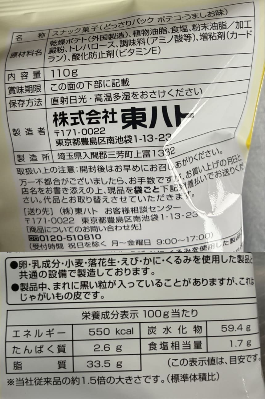 - ・どっさりパック ポテコ・うましお味 110g×5袋