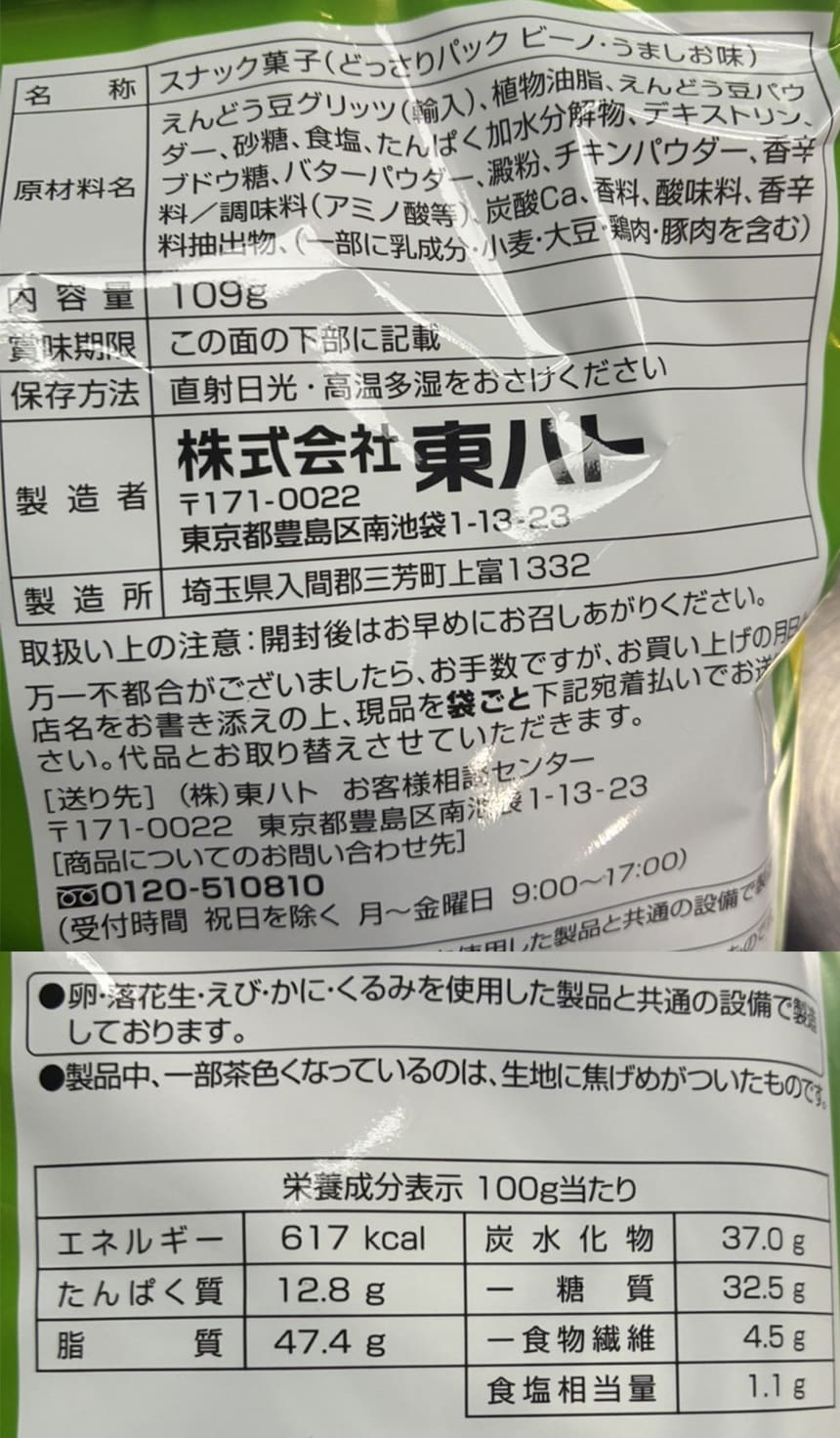 どっさり入った大容量パックのビーノのうましお味です。ノンフライで食物繊維・たんぱく質入り。