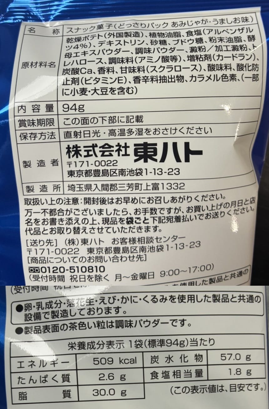 ・どっさりパック あみじゃが・うましお味 94g×5袋 - 賞味期限