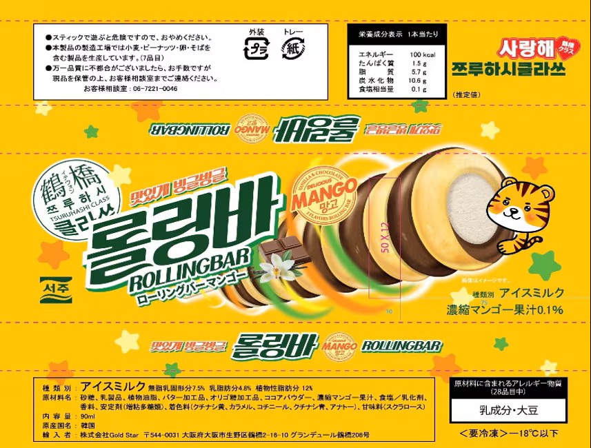 マンゴー、バニラ、チョコの3種類の味がスムーズに調和するローリングバーシリーズ2番目のアイスクリーム