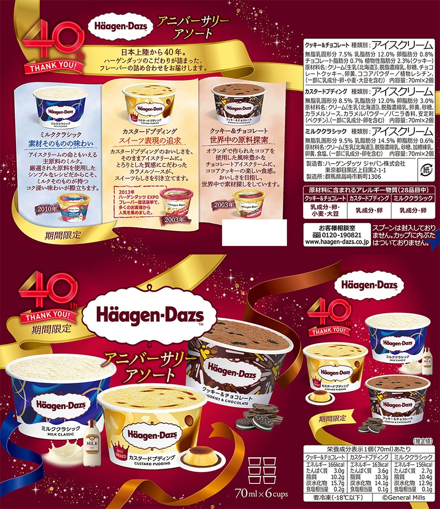 [12箱]ハーゲンダッツジャパン アソートボックスアニバーサリー 70ml×6個入 | 「ハーゲンダッツ おいしさへのこだわり」が詰まった40周年記念アソートボックス
