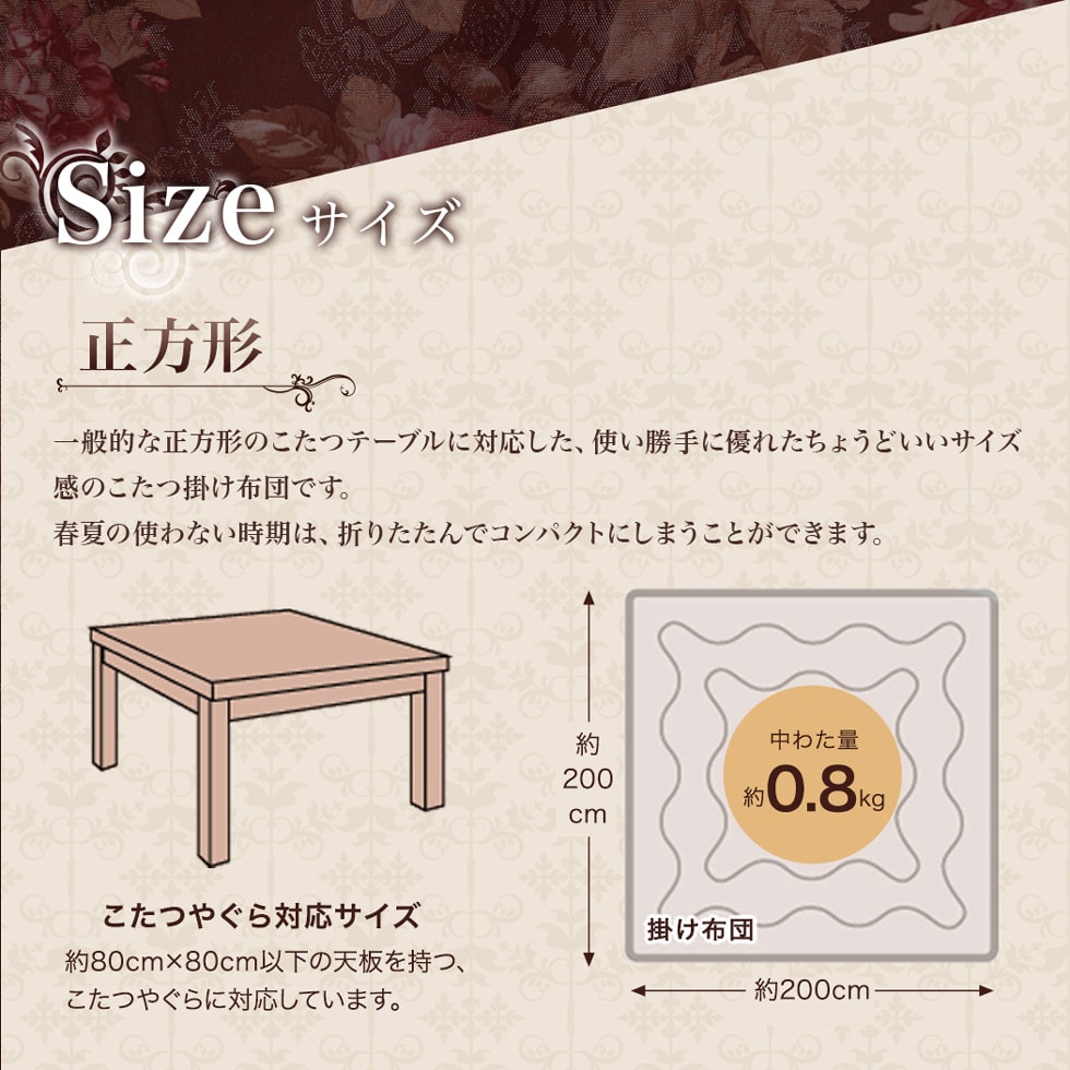 ・その他商品仕様:約80×80cm以下の天板を持つこたつやぐらに対応しています。