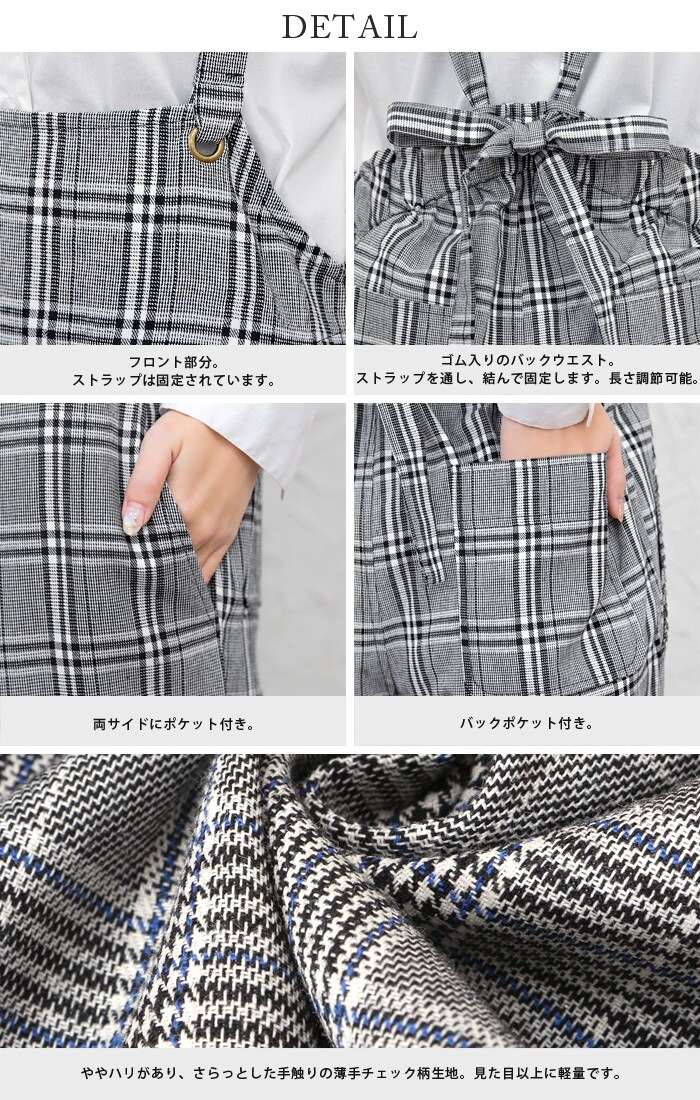 旬のコーデが完成。チェック柄サロペット オールインワン サロペット | グレンチェック