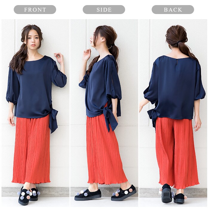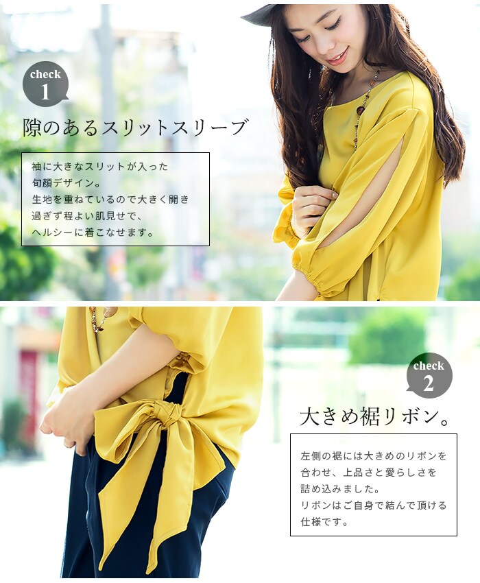 【ベージュ】 サイドリボンスリット袖ブラウス | 隙のあるスリッドスリープ。大きめ裾リボン