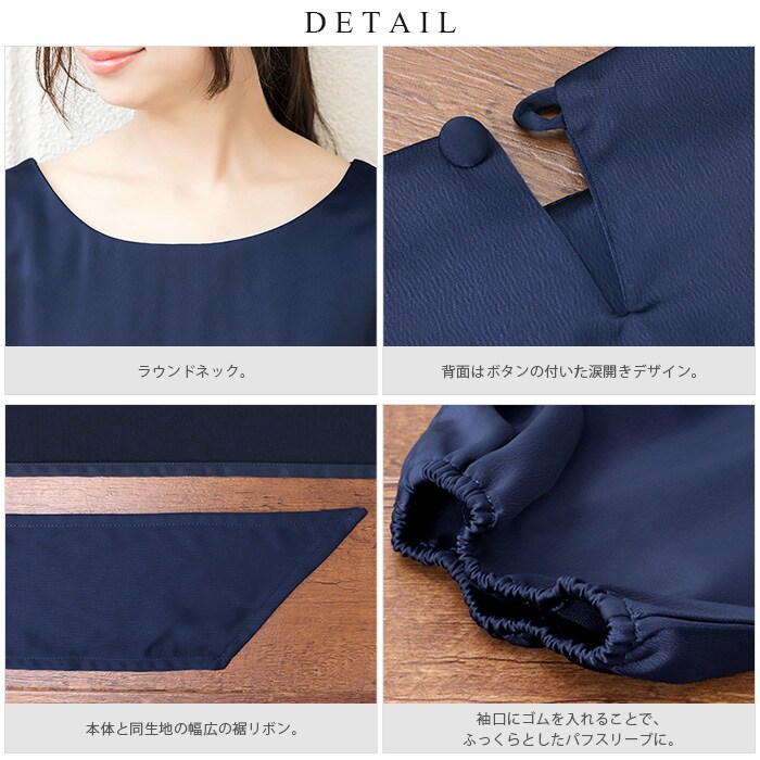 着丈60 バスト106 肩幅46 袖丈34 袖口(ゴム)24-40 袖スリット34 裾周り114 リボン長さ54 リボン幅9.5