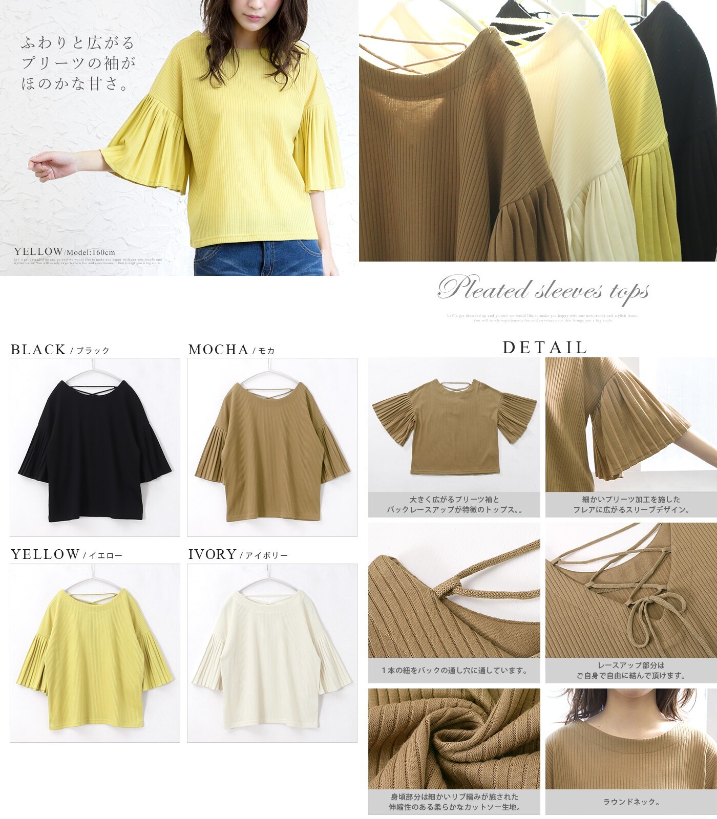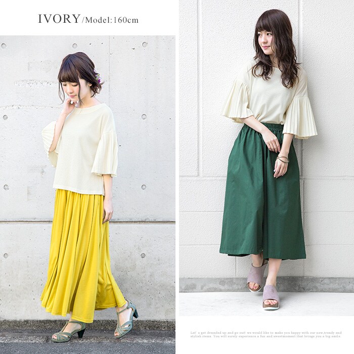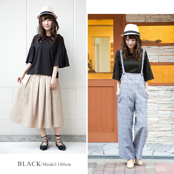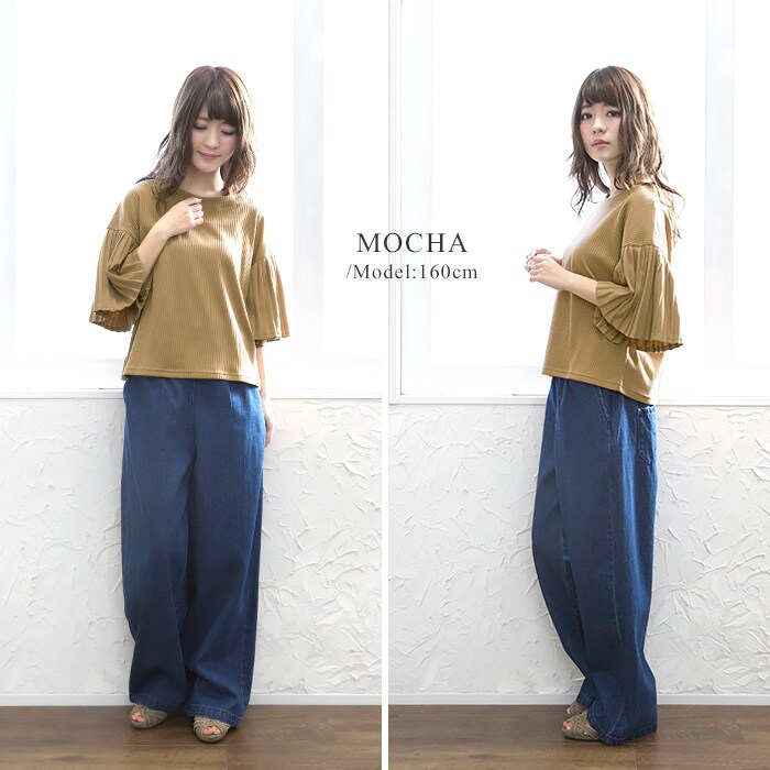 - 後ろ姿から女性らしさを醸し出す。ワイドリブ プリーツ袖トップス