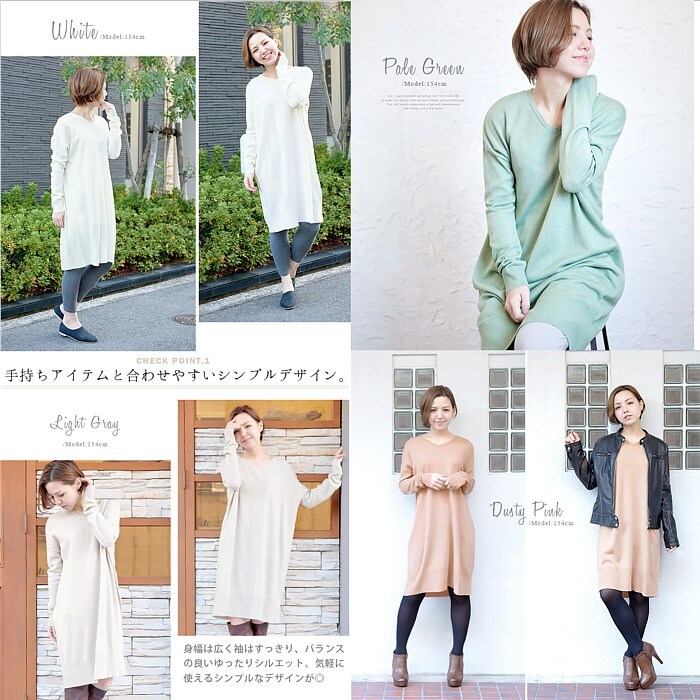 スッキリとシンプルに着る。Vネック ワイドニット | ニット セーター Vネック チュニック ワンピース ニットワンピ プルオーバー レディース