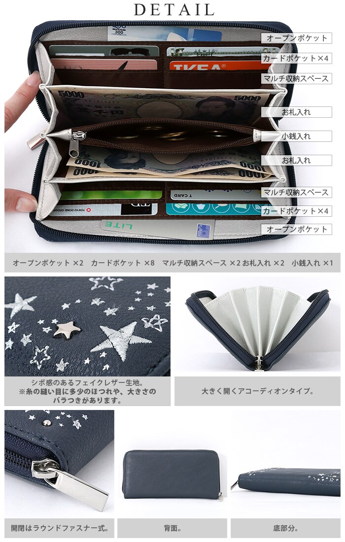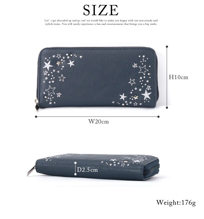 きらりと光る存在感。星空長財布 | 財布 長財布 ラウンドウォレット 小銭入れ レディース 星 星柄 刺繍 プリント 柄