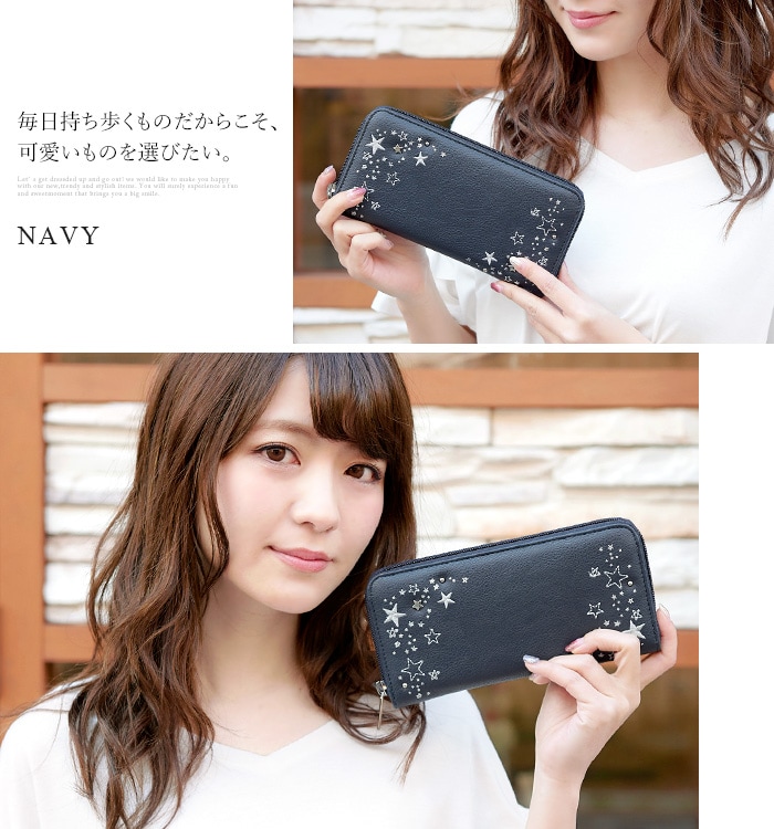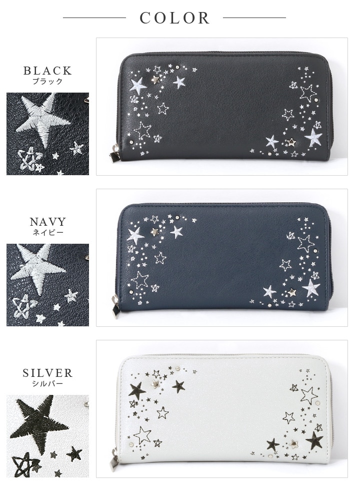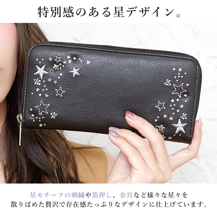 きらりと光る存在感。星空長財布 | 財布 長財布 ラウンドウォレット 小銭入れ レディース 星 星柄 刺繍 プリント 柄