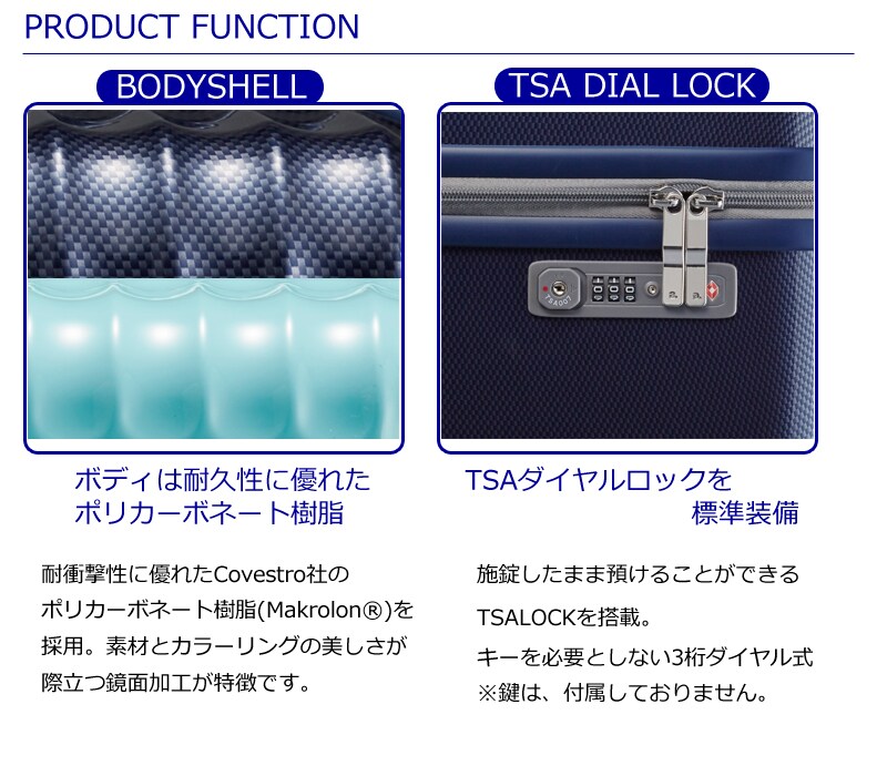 機能一覧:4輪/TSAロック/多段階ハンドル/布団とオープン/静音双輪キャスター