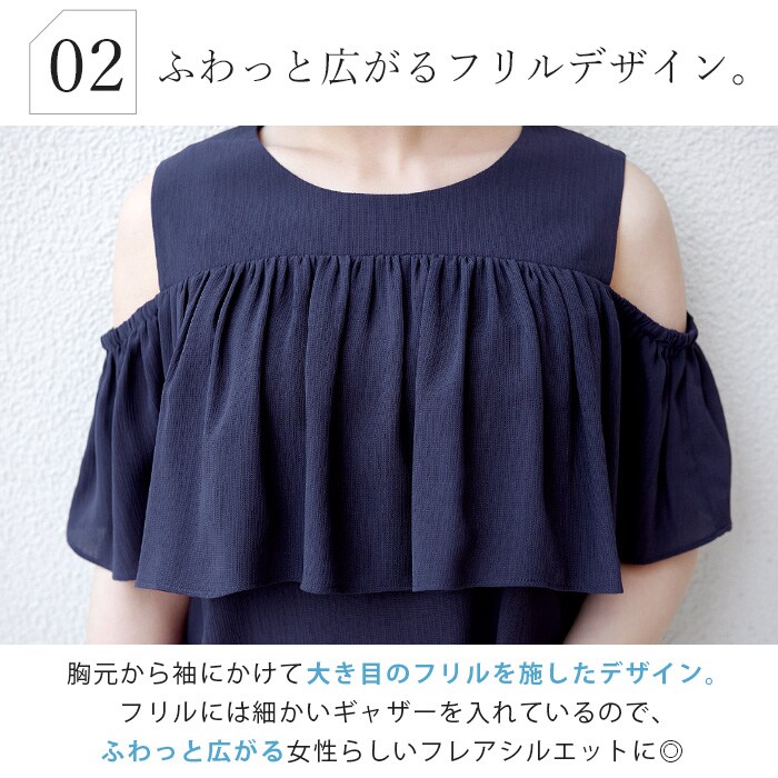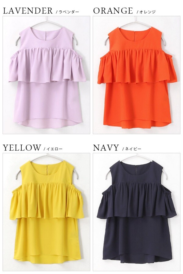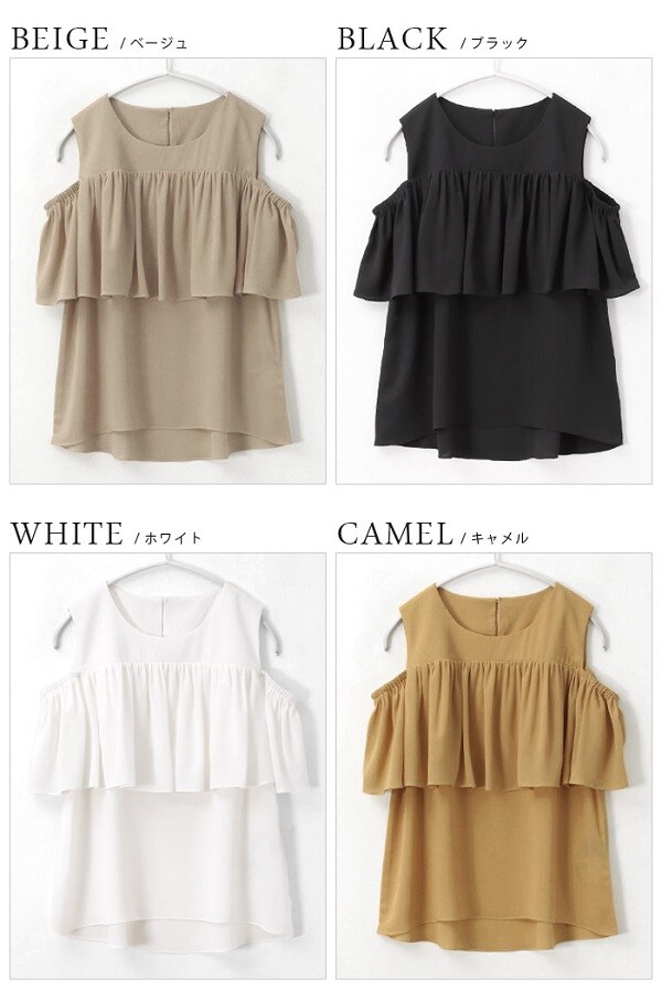 - 360度ドキっとさせる。オープンショルダー フリルブラウス