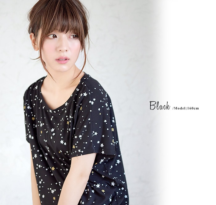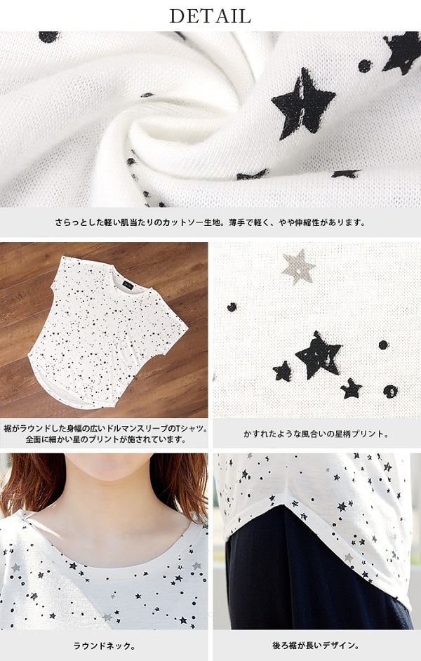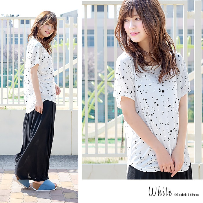 オリジナルTシャツコレクション。流れ星プリントTシャツ | Tシャツ トップス 星 星柄 プリント レディース 半袖 ゆったり