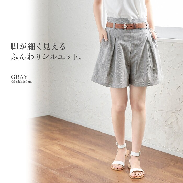 女性らしさ一層引き立つ。グレンチェック ショートパンツ | ショーパンショートパンツ パンツ グレンチェック チェック柄 ハイウエスト レディース