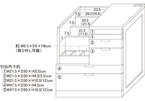◆さまざまな大きさの引き出しがあり、小物類が整理できるので探し物が簡単に見つかります。
