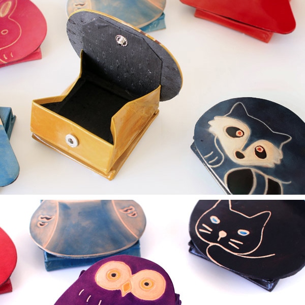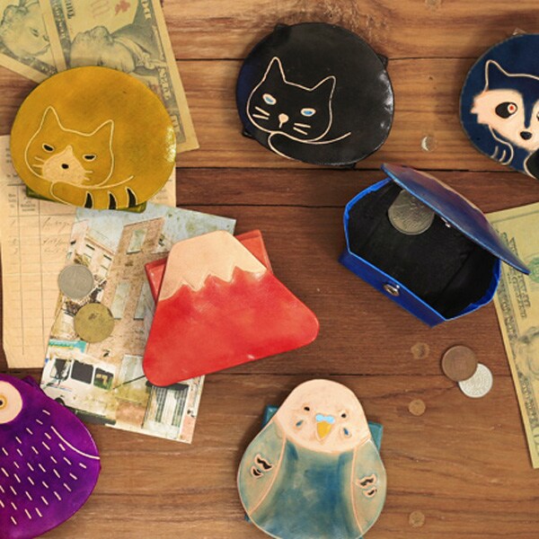 ヤンピー(山羊革)コインケース まるまる黒ネコ | 山羊革に型押しで模様をデザインして、カラフルにペイントしたコインケースです。