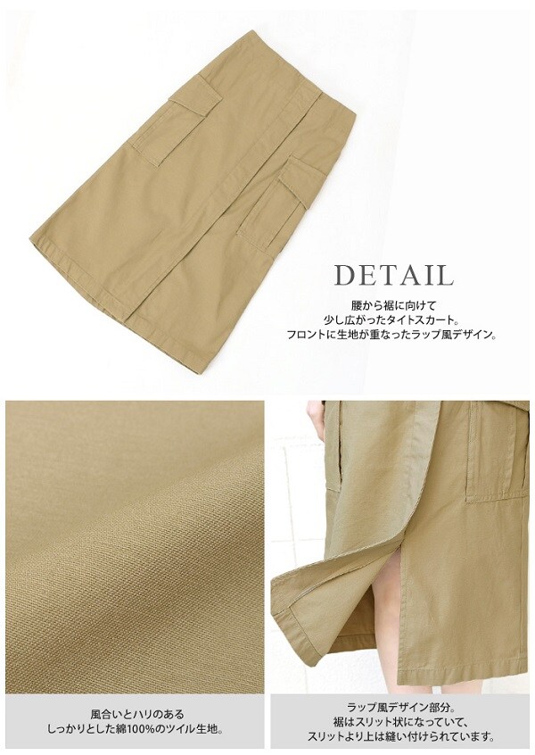スッキリ見える大人デザイン。カーゴ タイトスカート | スカート タイトスカート カーゴスカート ミリタリー レディース ボトムス 膝下丈 カジュ