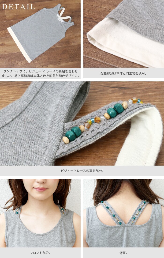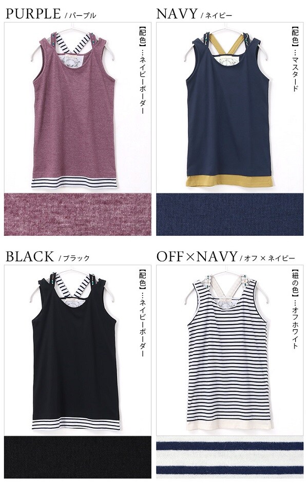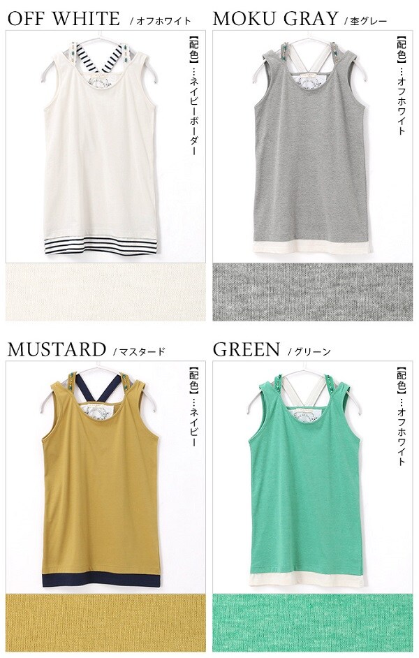 オシャレに重ねる。ビジュー付きレイヤードタンクトップ | タンクトップ タンク カットソー レディース トップス レース ビジュー ボーダー ノース