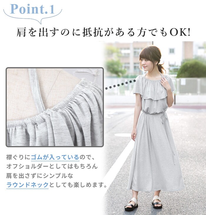 自分好みにアレンジ可能。オフショルダー ワンピース | ワンピース ワンピ オフショルダー カットソー レディース ロング丈 マキシ丈 ノースリー