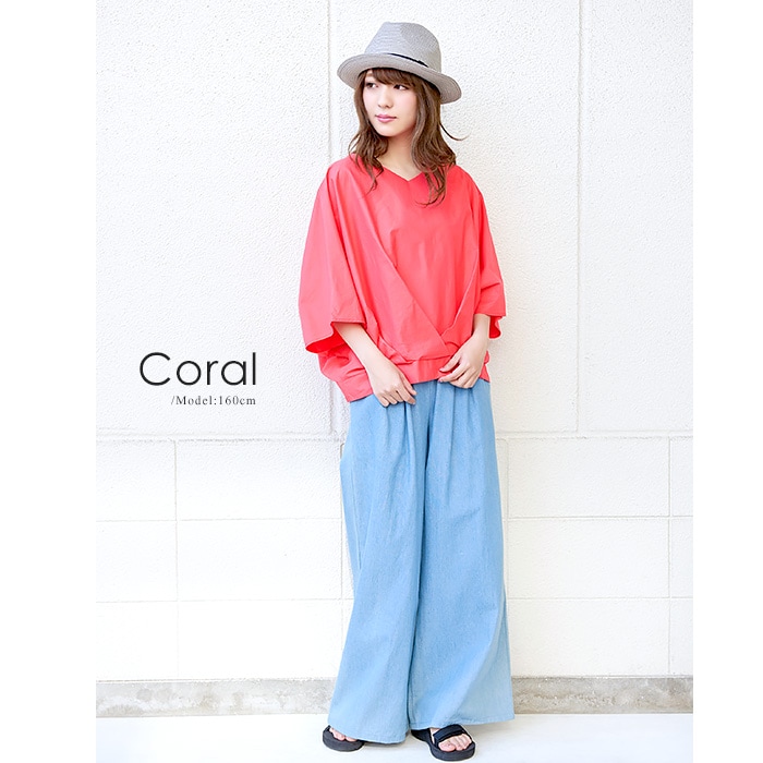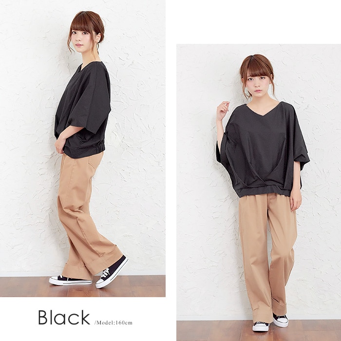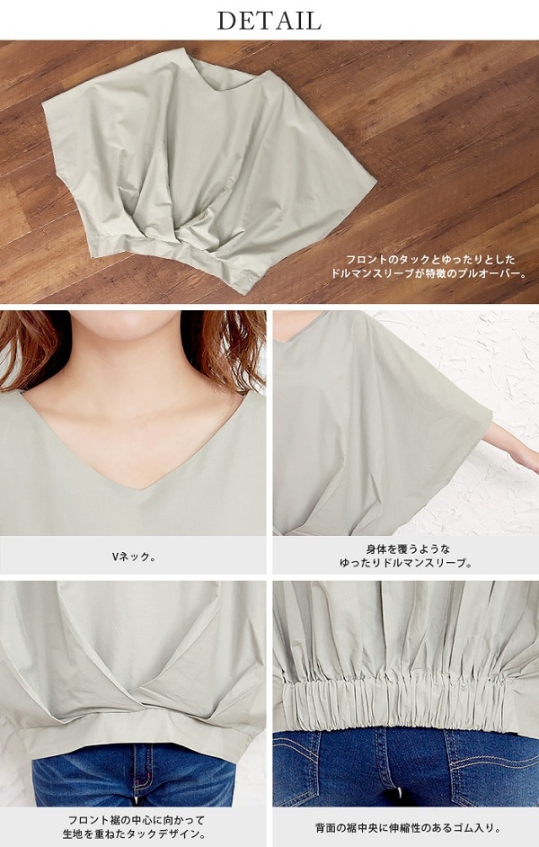 きちんと感のある、ゆるシルエット 前タック ドルマン プルオーバー | プルオーバー ブラウス ドルマン レディース トップス Vネック 大きいサイズ 綿100%