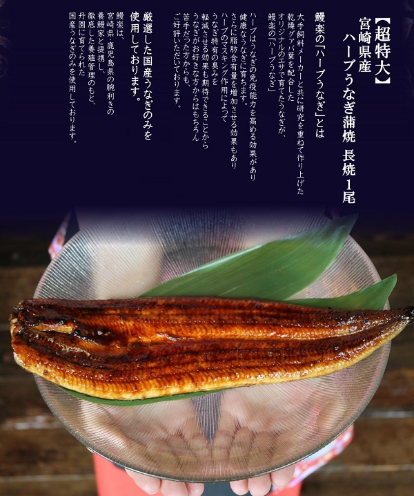 - 【サンプルの日】超特大300g以上 国産ハーブうなぎ蒲焼 長焼1尾 (鰻楽)