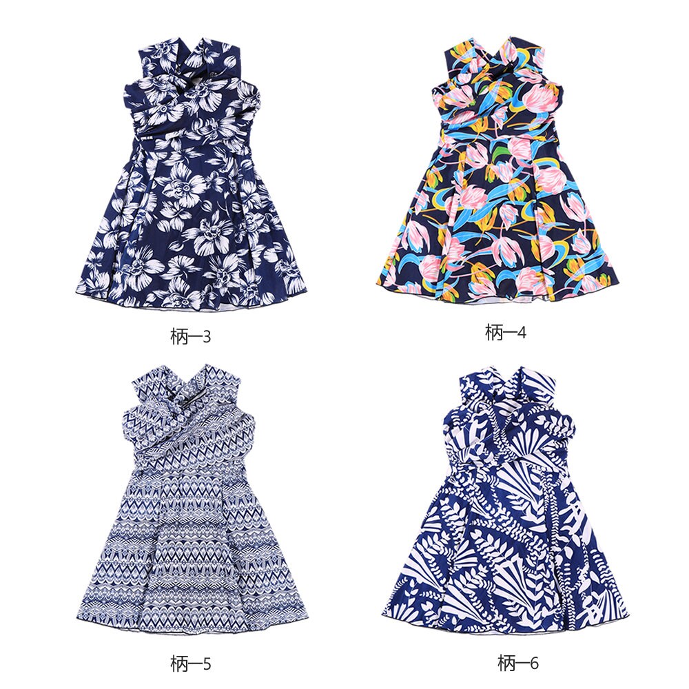- 2018新作 おしゃれ 体型カバー 流行 ママ水着 花柄 レトロ ボーダー