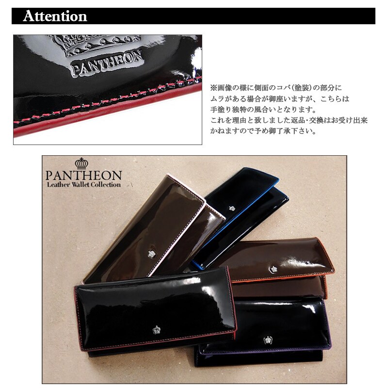 リッチなエナメル加工を施した二つ折り長財布。側面のコバと同色のステッチや、前面にさり気無くデザインされたワンポイントのクラウン、内側のストライプ模様が更に魅力を引き立てるアクセントとなっています。
