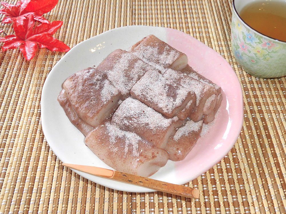 4.付属の きなこ、粉末あんこ、砂糖をまぶしお召し上がり下さい。