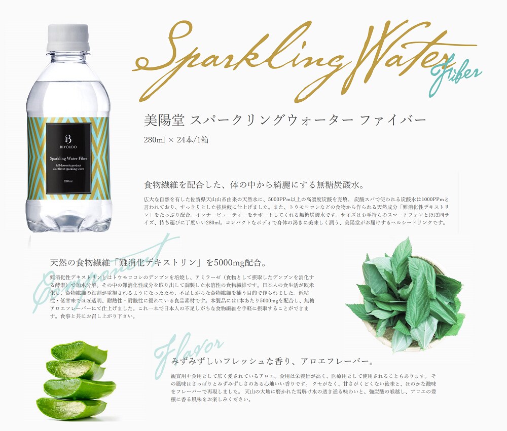 【280ml×24本_アロエフレーバー】美陽堂スパークリングウォーター ファイバー 美容炭酸水 | 食物繊維を配合した、身体の中から綺麗にする無糖炭酸水