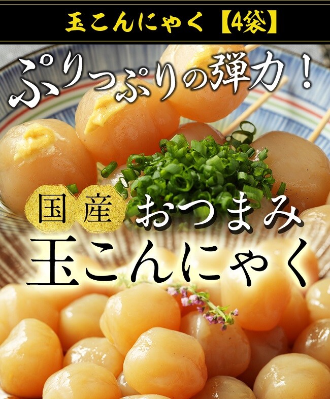 - おつまみこんにゃく4袋、玉こんにゃく4袋、
