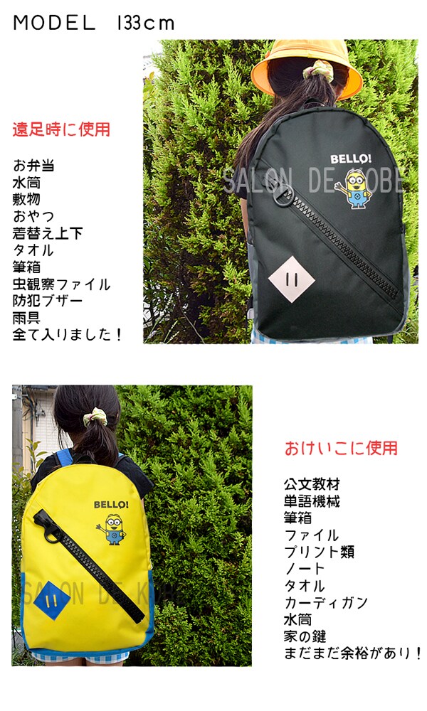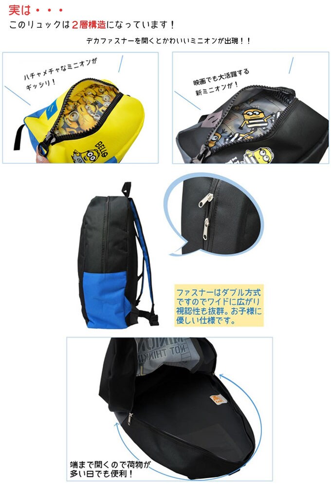 ブラック【2層式で大容量 ミニオン デカファスナー リュックサック】ボブ バッグ | 通学、通園、遠足、旅行等に共通で使える大容量のリュックがほしいというお子様にピッタリ!
