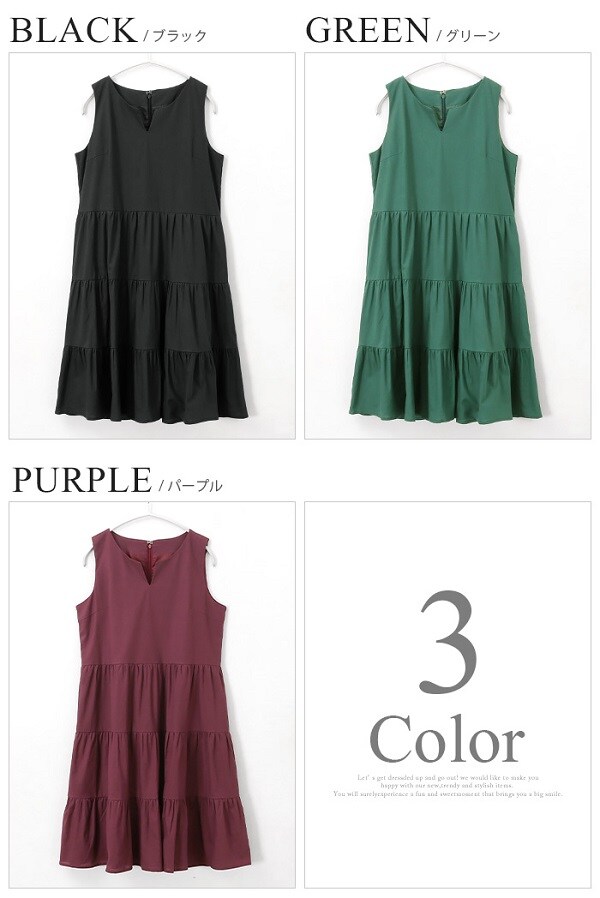 ふわりと広がる甘いデザイン キーネック ティアードワンピース | ワンピース ワンピ 綿100% コットン ティアード レディース 膝丈 ノースリーブ