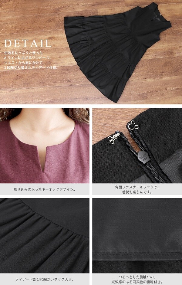 - ふわりと広がる甘いデザイン キーネック ティアードワンピース