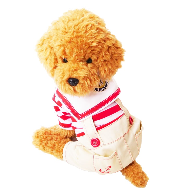 【50円クーポン対象】ドッグウェア マリンデザインが可愛い ワンちゃん用のつなぎ「レッドL」 | おしゃれな犬服といえば!「はっぴーDOG」にお任せ♪小型犬・中型犬・大型犬