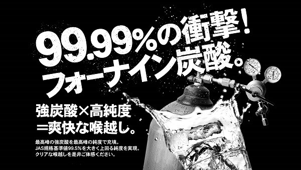 99.99%の純度を誇る二酸化炭素を特許技術「マイクロバブル圧縮充填法」により世界TOPレベルの炭酸充填量5.0を実現。炭酸水の新たなスタンダード「VOX」。