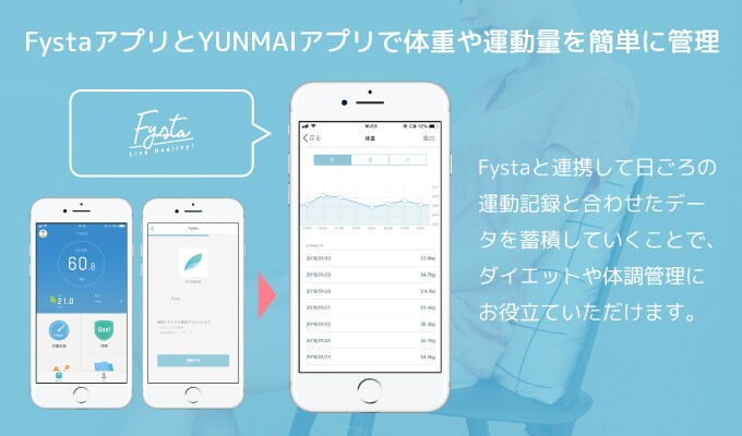 4.フィットネスアプリと連携し「体重」「運動時間」「消費カロリー」もスマホ管理できます。※Appleのヘルスケア、Fitbit、GoogleFitなどの健康管理アプリとも連携可能