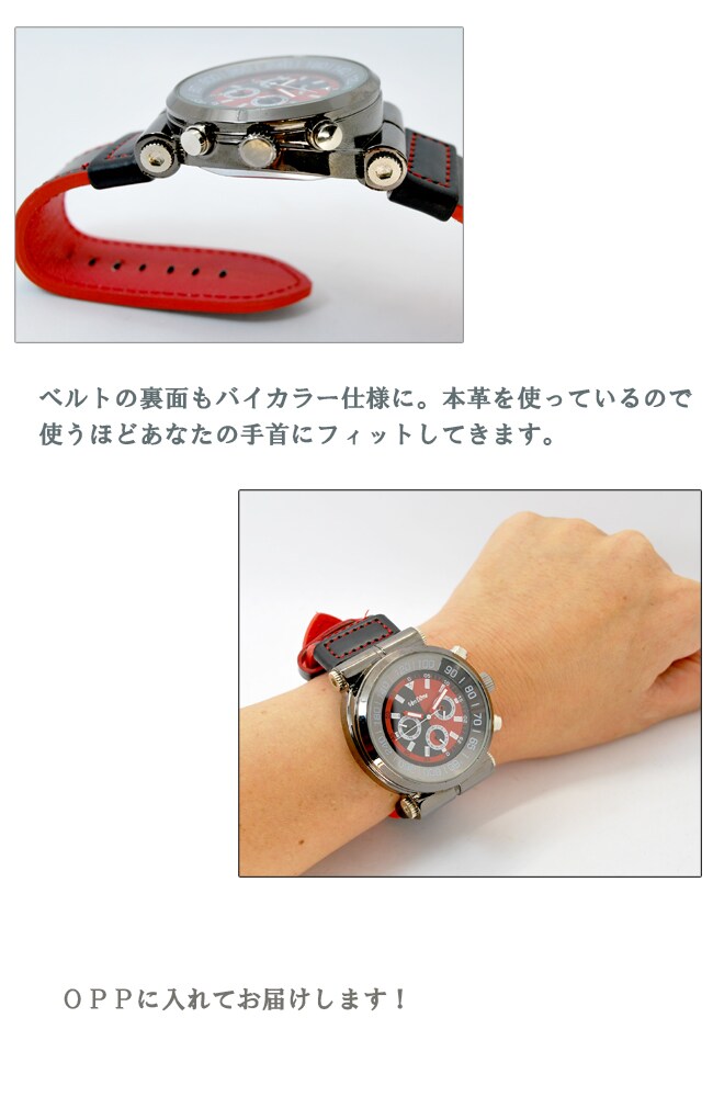 ベルトも表はブラック、裏はレッドのバイカラーになっていてオシャレ!